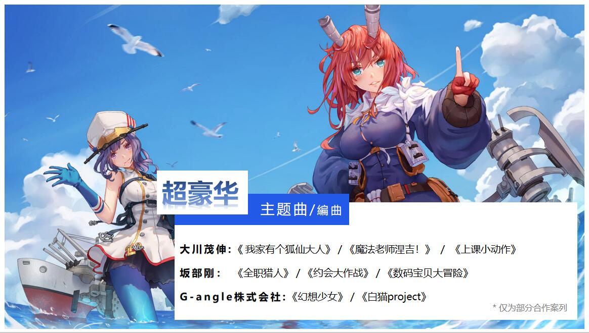 公司创立于2017年11月18日,一直致力于为二次元游戏厂商提供专业的声优配音、音乐制作、美术制作、日本IP代理、出海游戏产品代理等服务。